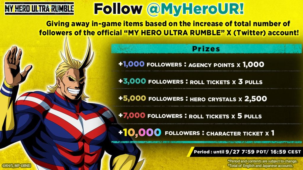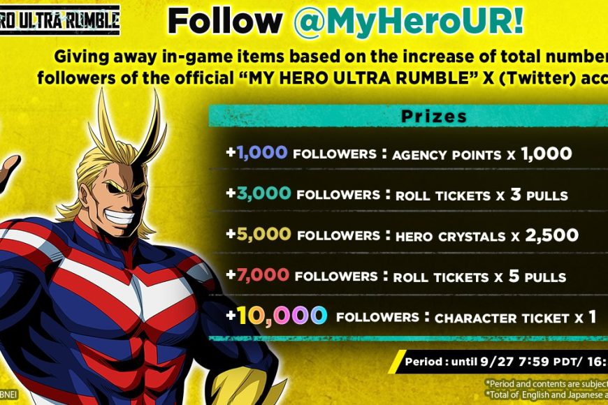 In preparation for the launch of My Hero Ultra Rumble, a Follower Campaign is being held!