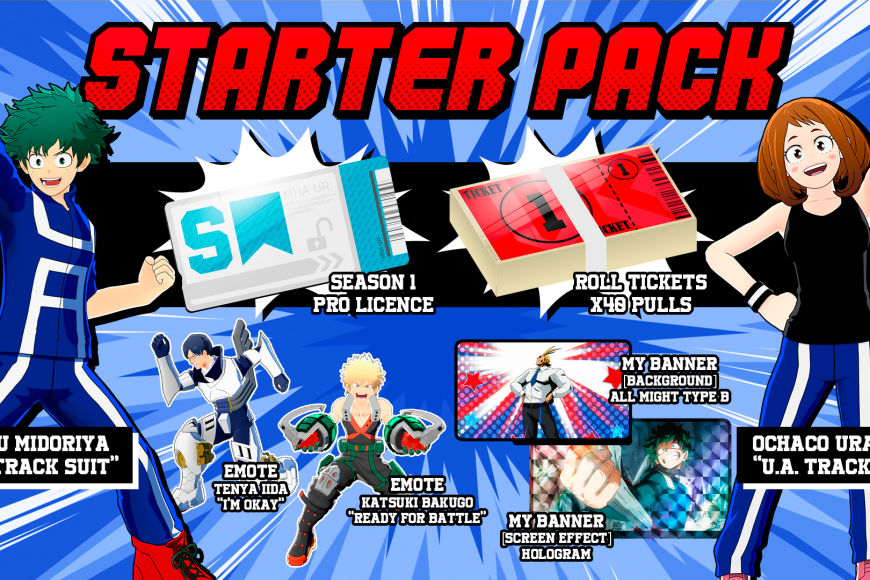 This is a limited time only Starter Pack to celebrate the launch of MY HERO ULTRA RUMBLE.
