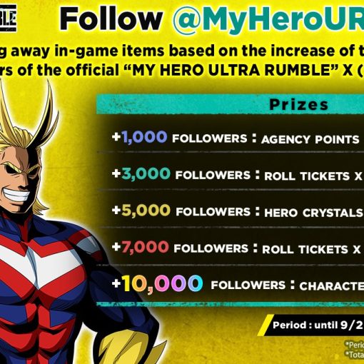In preparation for the launch of My Hero Ultra Rumble, a Follower Campaign is being held! Free in-game rewards!
